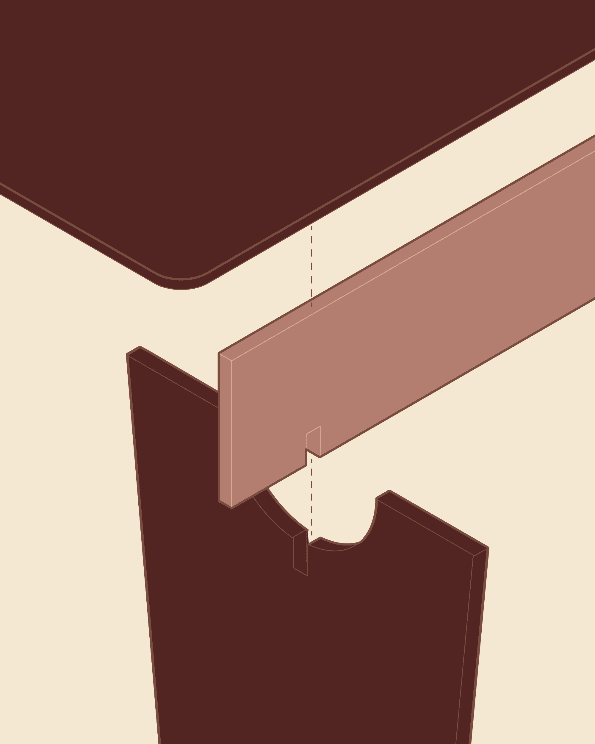No espaço, a mesa estabelece um eixo estável. Reúne, ancora e organiza a permanência com sobriedade. O encaixe, visível e preciso, é o que mantém a coerência do conjunto.