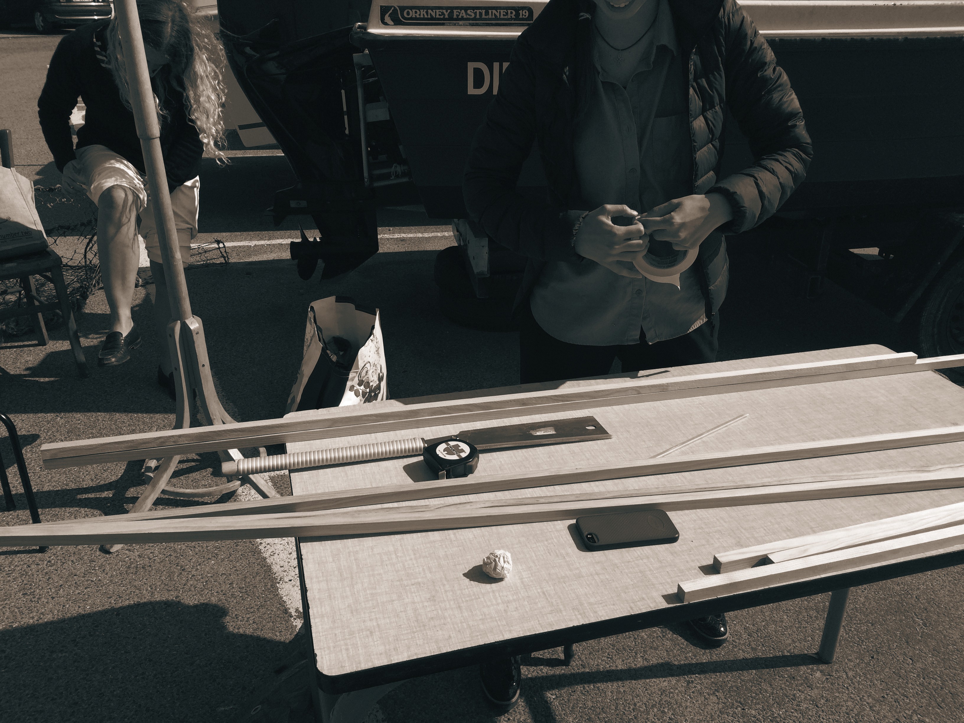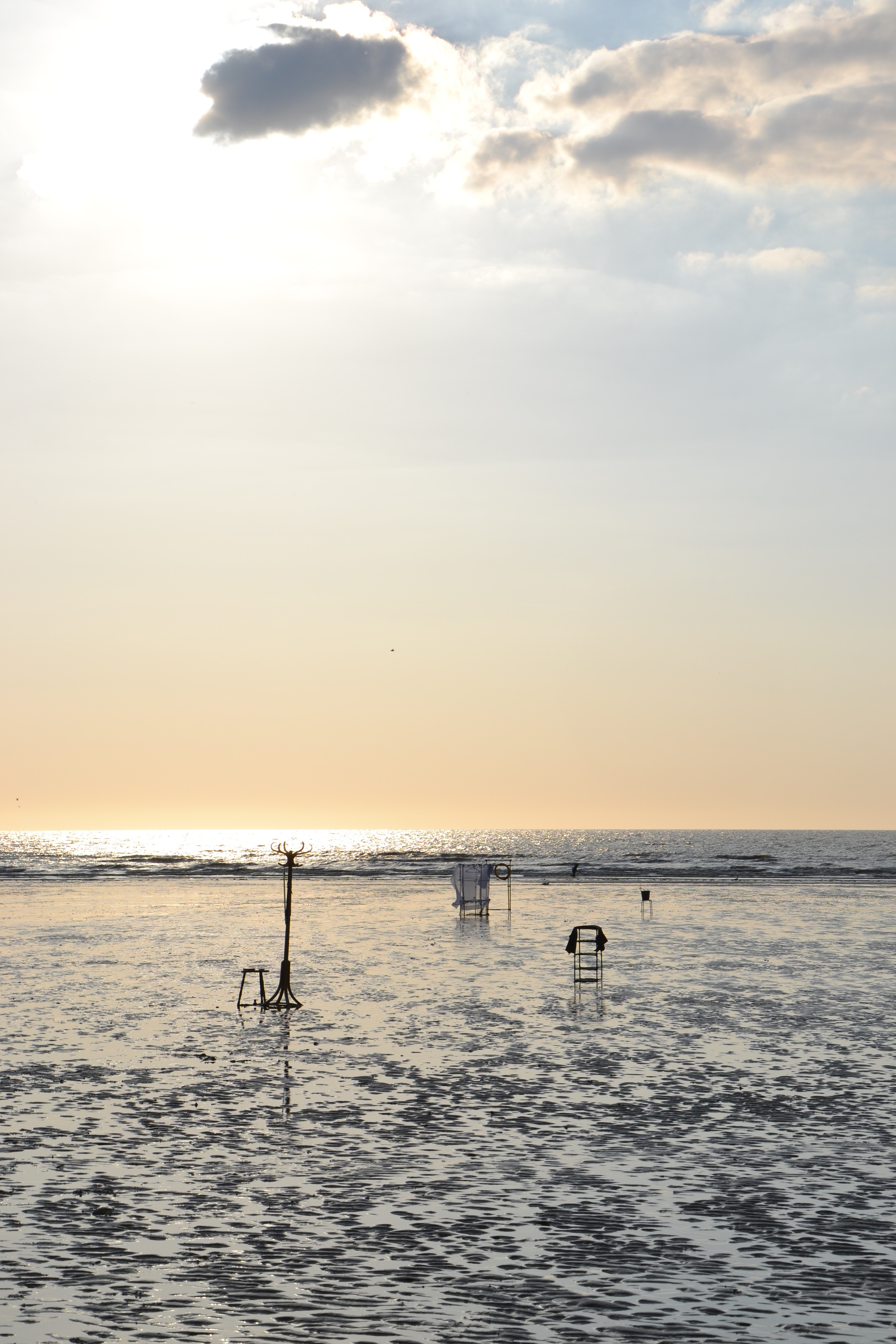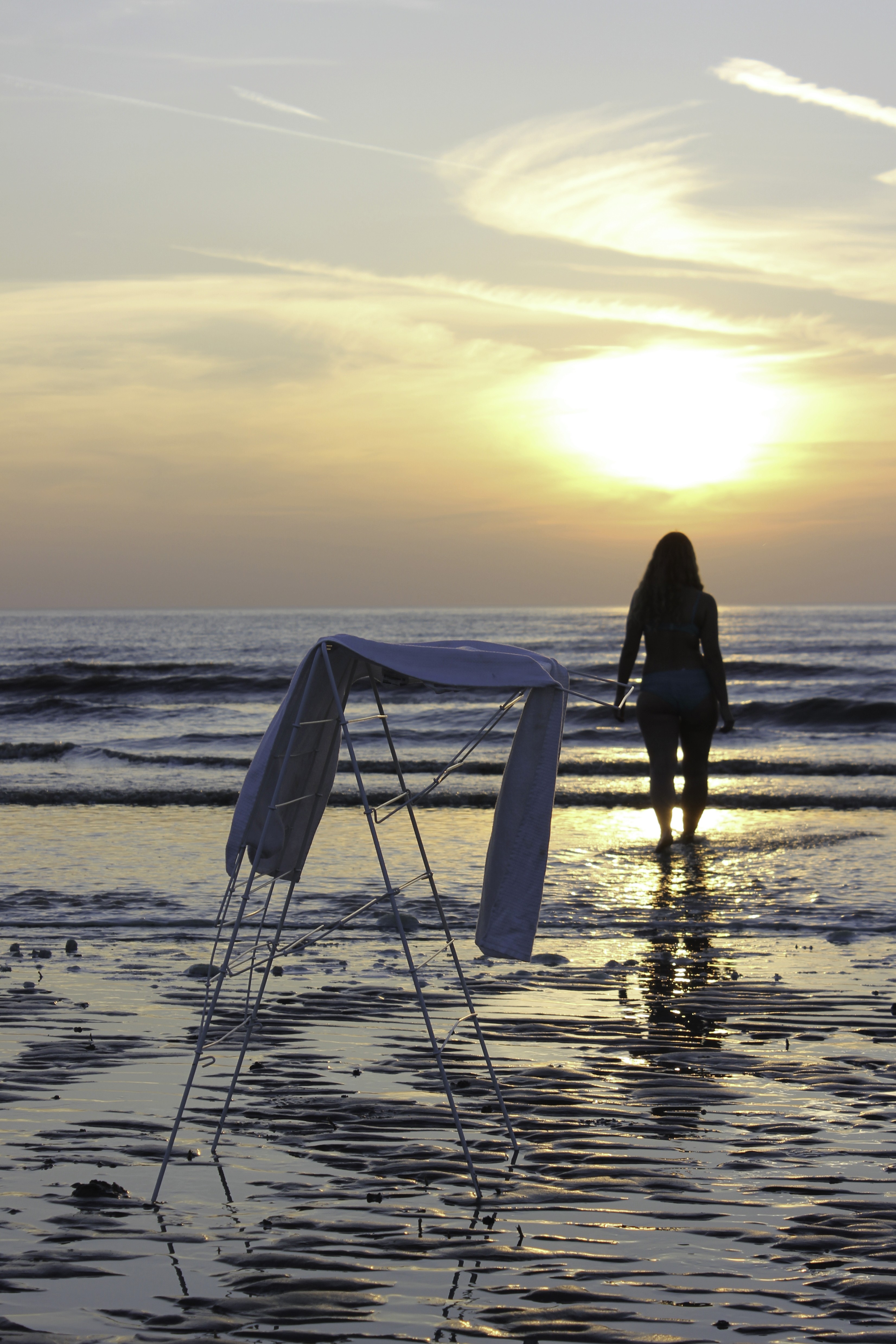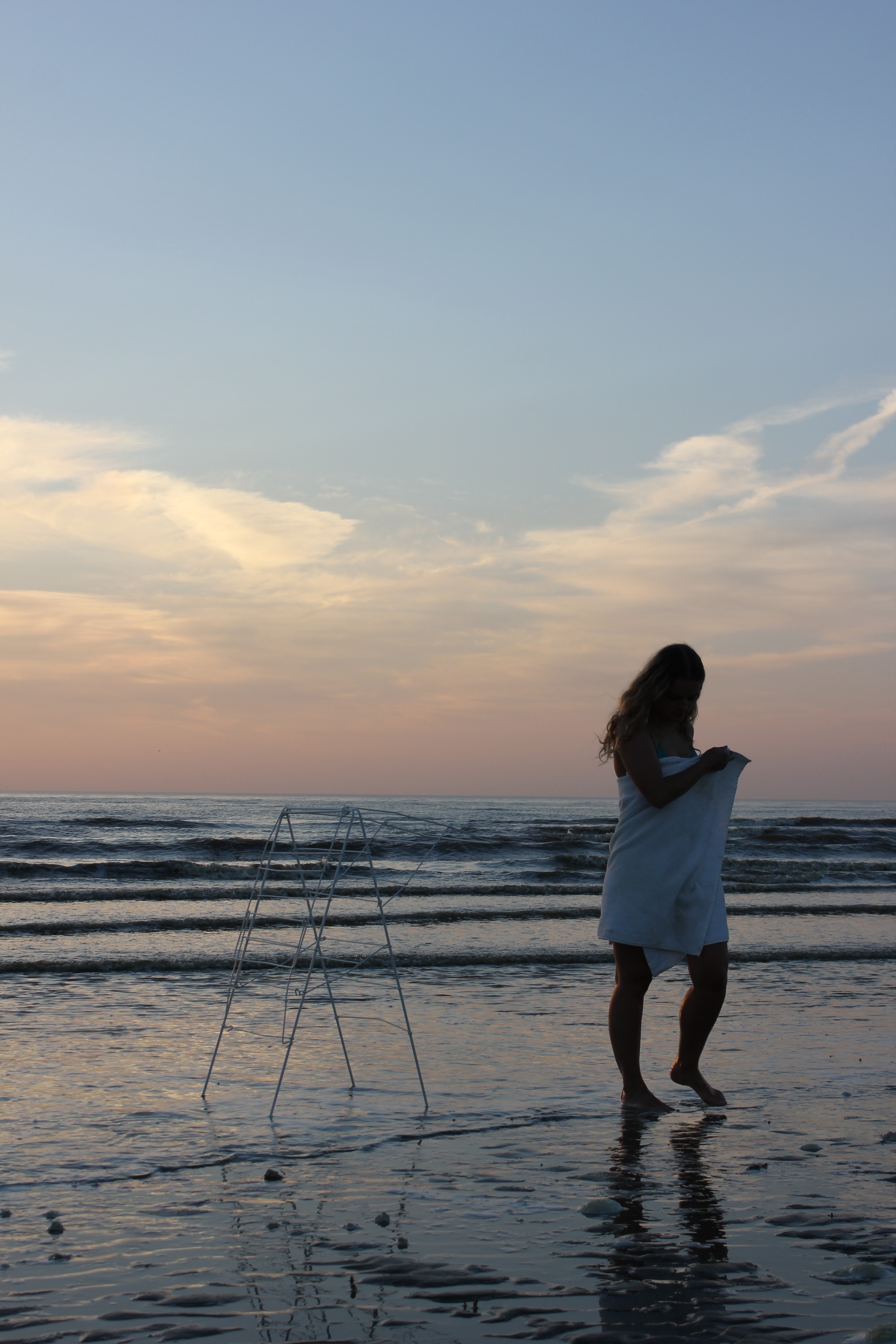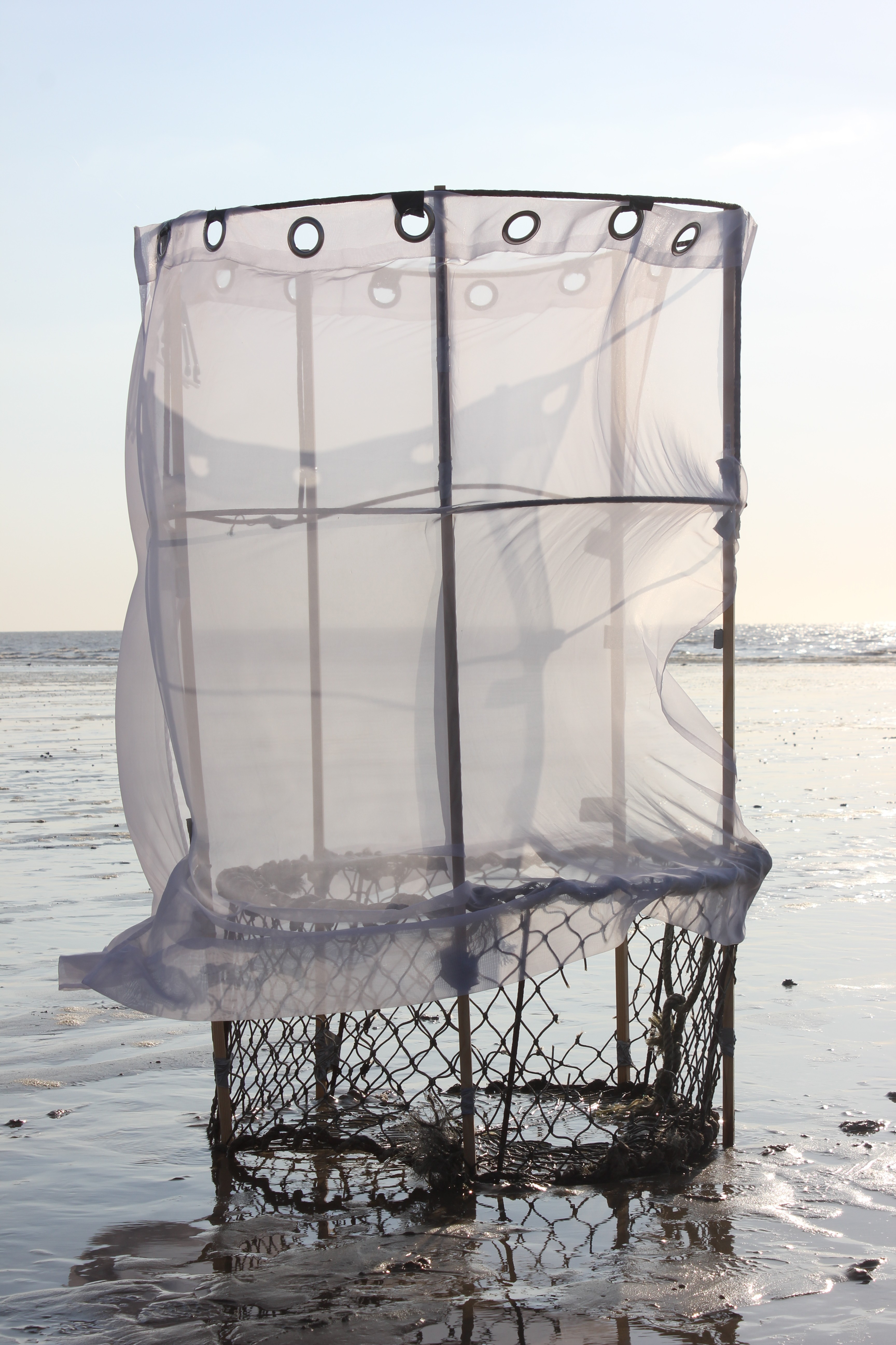 Utilizando materiais coletados em mercados locais, a equipe construiu uma cabine de banho móvel — um gesto que reinterpreta as práticas balneares do passado de forma contemporânea. A instalação, posicionada durante a maré baixa e posteriormente submersa pela maré alta, propõe um novo olhar sobre a ocupação do espaço costeiro, como um ritual lento e coletivo. A experiência reforça que qualquer transformação real e duradoura no território só pode acontecer com o envolvimento ativo da comunidade local.
