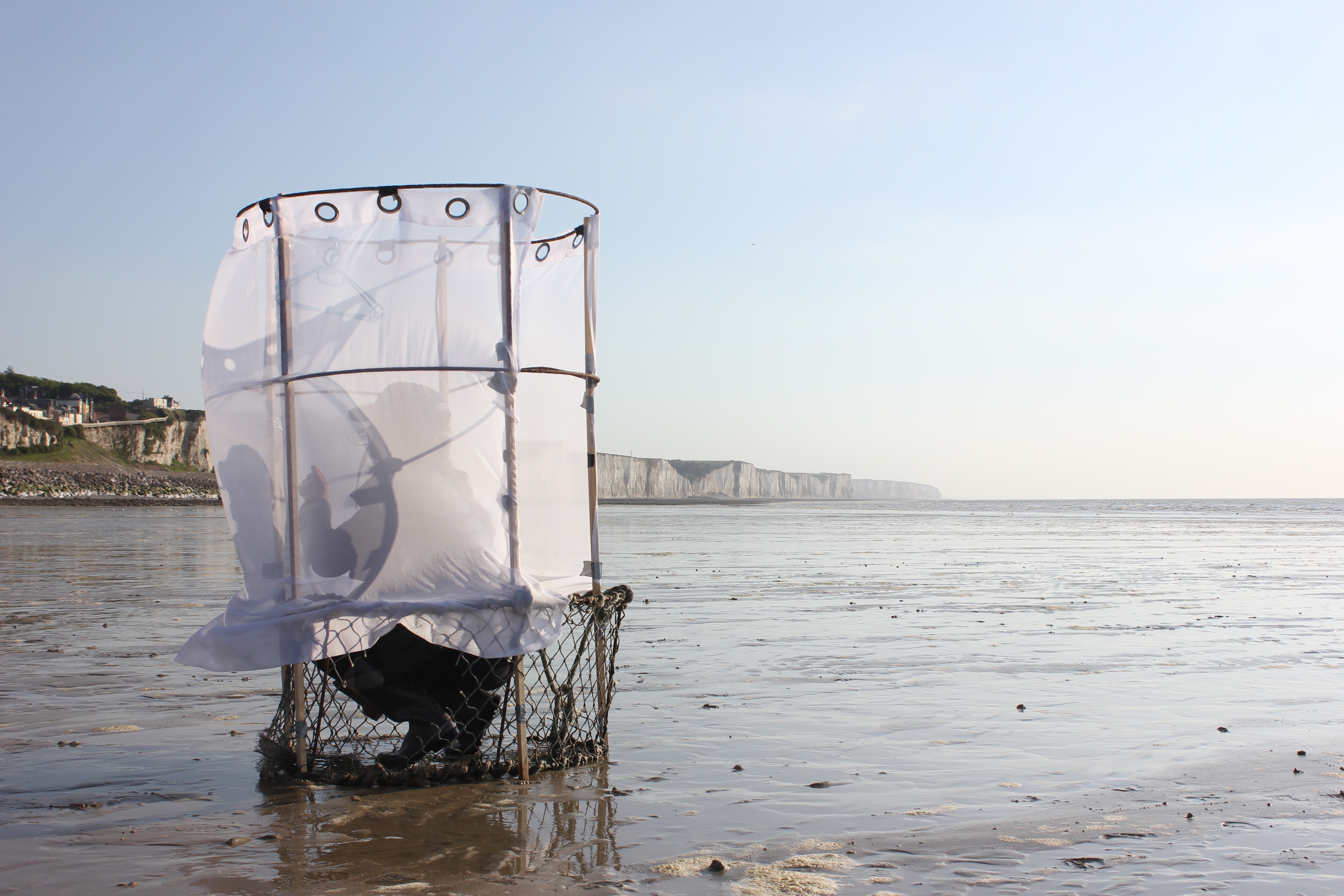 Rituais de Praia é uma intervenção efêmera realizada em Ault, na região da Picardie (França), como parte de um programa que explorava as sinergias entre a comunidade local e a geografia natural. A cidade, que já foi um vibrante destino turístico no início do século XX, enfrenta hoje os impactos da erosão costeira — processo natural que transformou profundamente sua relação com o mar. O projeto propôs estratégias de nanoturismo para reativar simbolicamente os rituais de banho e ocupação da praia, em diálogo com a memória local e a paisagem em constante negociação entre terra e mar.